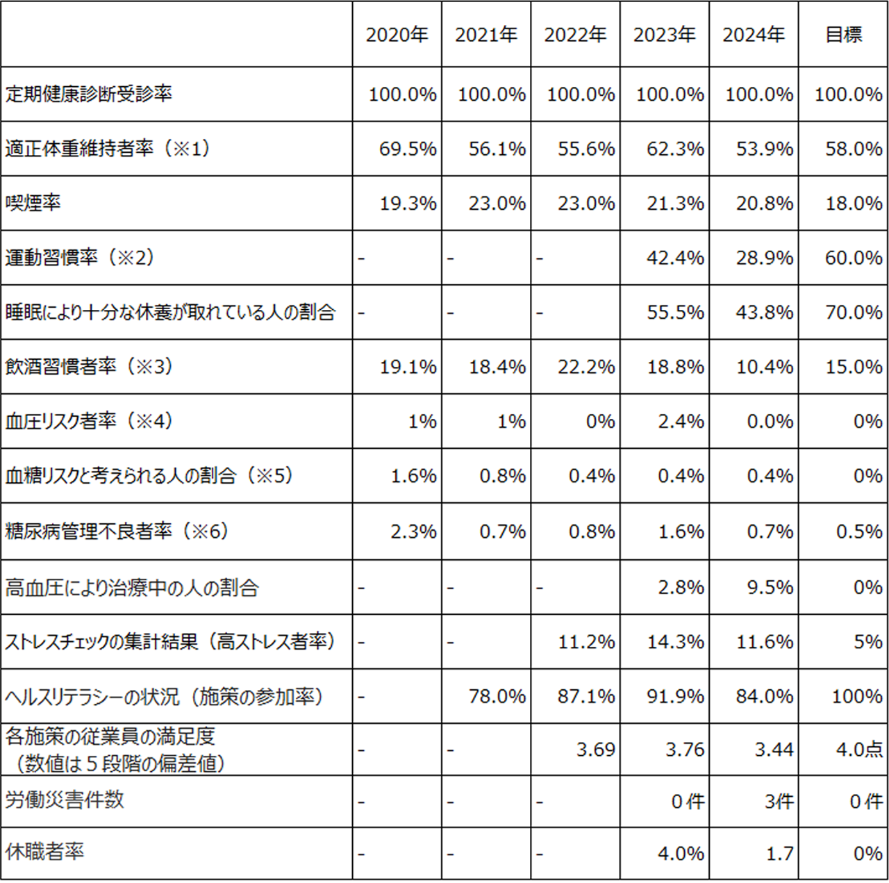 当社グループは健康課題に対して目標値を設定の上、取り組みを行います。